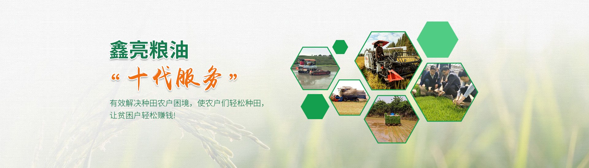 代機(jī)耕、代育秧、代插秧、代機(jī)防、代機(jī)收、代清理、代烘干、代倉(cāng)儲(chǔ)、代加工、代銷售